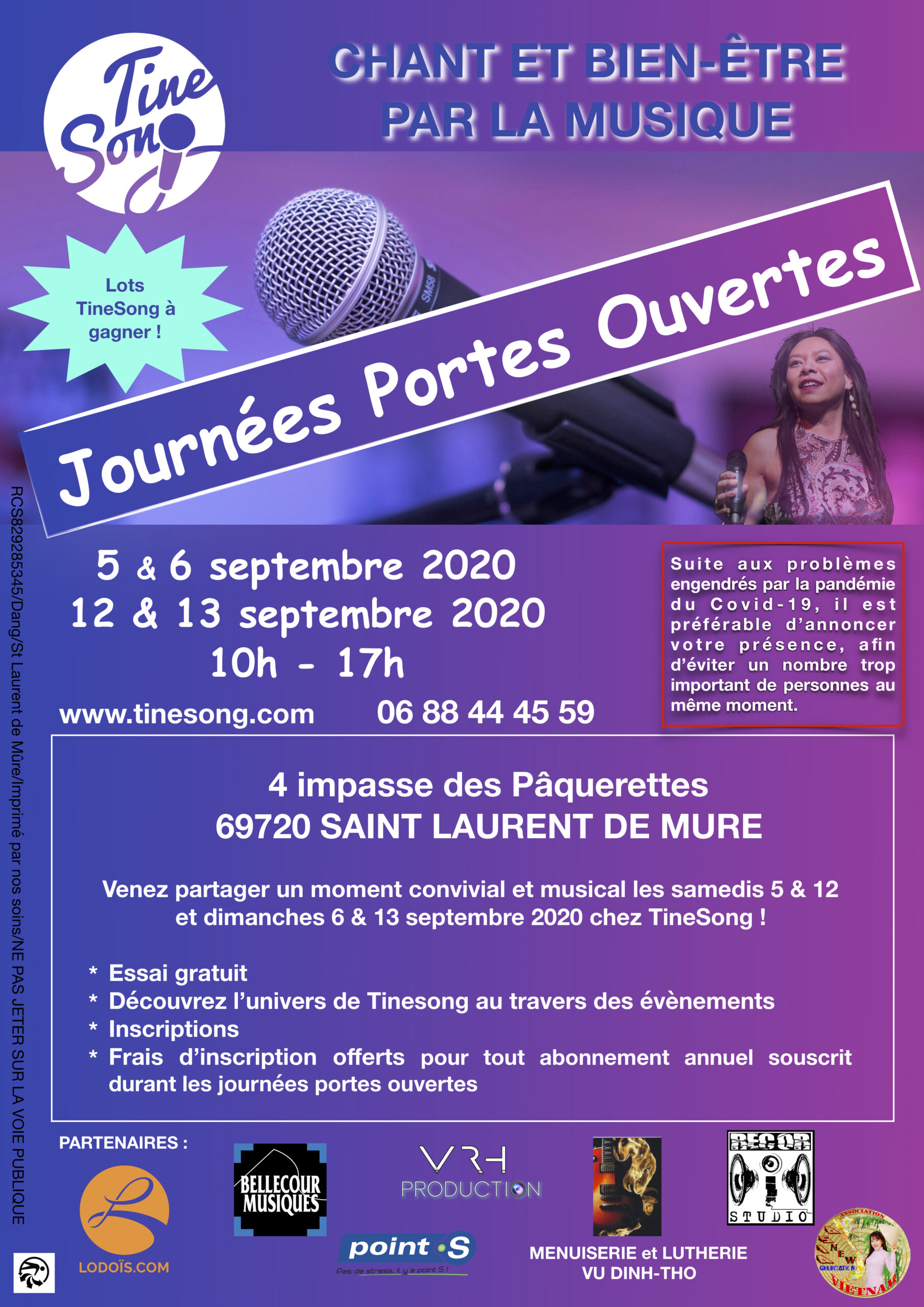 Journée Portes Ouvertes TineSong 2018 Chant & Bien-être par la musique Mercredi 25 avril 2018 – de 10h00 à 19h30 Salle de conférence au restaurant O’Paille en Queue, 18 avenue de la mairie 69720 St Laurent de Mûre 1/ Chant POUR TOUS (intermédiaire et débutant): Testez votre voix ! (inscrivez-vous à l’avance pour passer … Lire plus